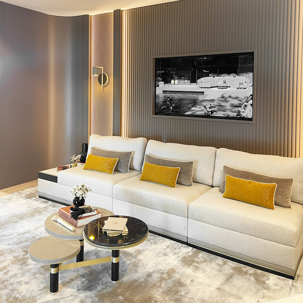 The new headquarters of FRATO Triva Group beautifully showcases the brand’s and group’s extensive skill set, with every detail reflecting our craftsmanship. This space embodies the full vertical integration of our production capabilities, highlighting the expertise that defines our work. It’s a testament to the artistry and precision that our team brings to every project.